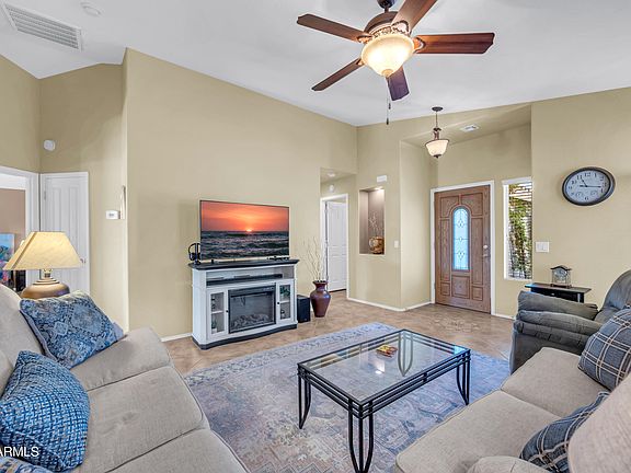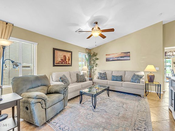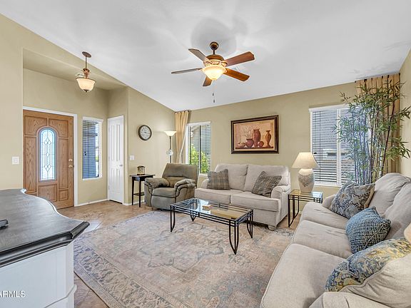 DON'T WAIT, come see this charming FULLY FURNISHED, move-in ready home on the golf course in the sought-after Mission Royale Active Adult Community! This 2 bed, 2 bath gem features 20'' diagonal tile throughout, granite countertops with tiled backsplash, stainless steel appliances, built-in microwave, two-drawer dishwasher, convection & warming oven, wine chiller, and water softener. Enjoy the walk-in shower in the master, ceiling fans, and epoxy garage flooring. North/south facing with an extended fully covered patio, pull-down shades, and fenced back yard—perfect for relaxing or entertaining with stunning golf course and mountain views! You won't want to miss this one!