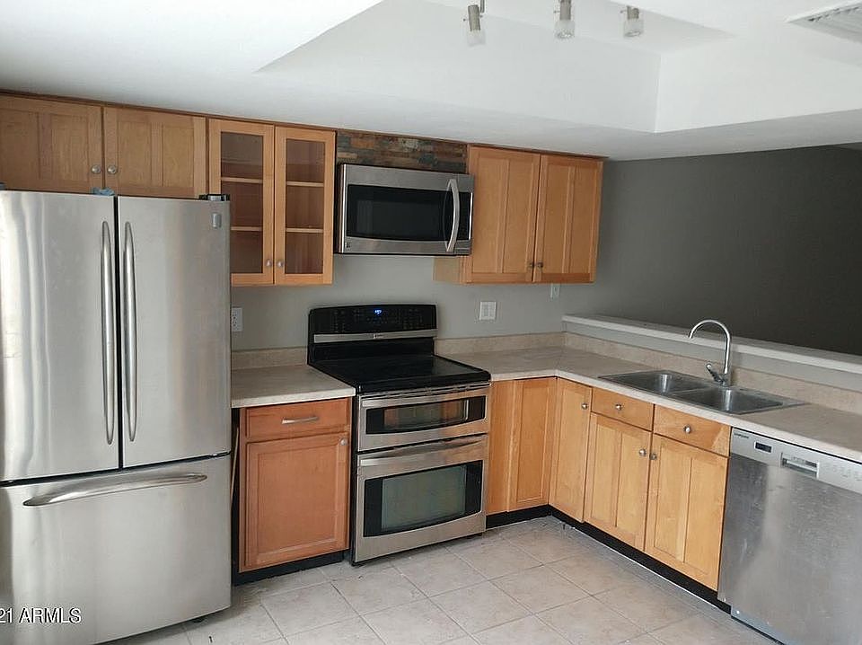 Super cute 2-story condo in Spanish Hills available for immediate move-in! Tastefully updated with a newer: front door, new security door, stainless steel kitchen appliances, recessed lighting, cordless wood blinds, two-tone paint, modern cabinetry and dual-flow toilets (all 2019). Spacious great room with breakfast bar and 1/2 bath down. Tiled floors throughout, ceiling fans, inside laundry with washer/dryer, master bedroom walk-in closet. Large outside storage room and back patio with easy-care wood plank flooring. Water, sewer, trash included with rent. Located near  schools and just minutes from Valle Luna, Costco, Desert Ridge, Lookout Mountain Trailhead at Phoenix Mountains Preserve,  Loop 101 and Highway 51. Lowest price TOWNHOUSE in all of 85032!
