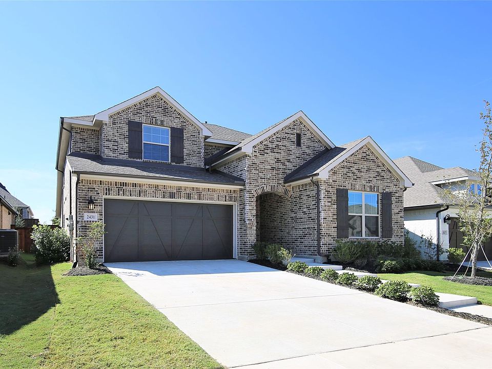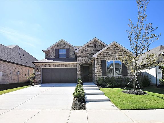 Home in Mustang Lakes with pools, tennis courts, gym and amenity center activities, 5 bedrooms, 4 baths, gas countertop range, built in microwave, disposer, dishwasher, granite countertops in kitchen, study with French doors, fireplace, covered entry, covered patio area, media room, mini blinds, decorative lighting, wood fenced back yard, HOA maintains landscaping and pest control.