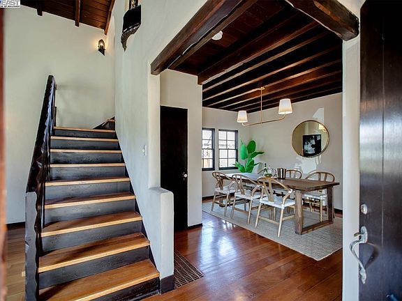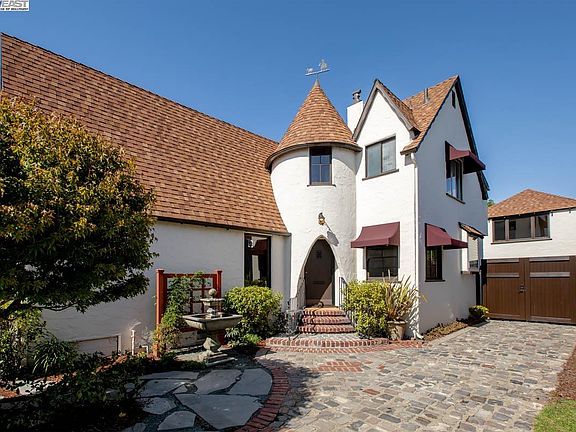 Large finished loft spaceNew light fixturesWhimsical interior stairwayLush native gardenUpdated primary brSteeply pitched roof linesWall niches