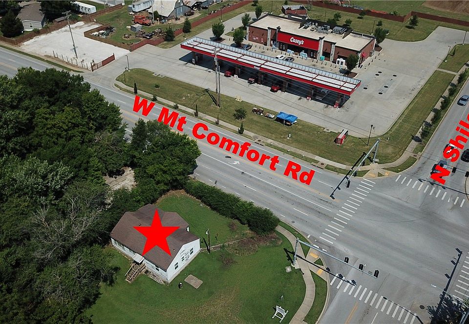 Perfect location for a fast food restaurant or a drive through coffee business. This is a corner lot location (hard corner) with a traffic light. Property is directly across Mt Comfort from a high volumn Casey's. Older house on the property is considered no value.