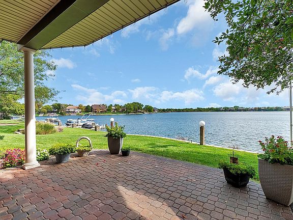 Welcome to your private lakeside retreat (original owner custom built home with generous storage), where quiet mornings on the deck give way to evenings watching moonlight shimmer across the water. This Harbor Isle home offers the best of both worlds: the serenity of a private getaway and the vibrant energy of a true lake community where every day feels like a vacation. Located in the highly desirable Harbor Isle neighborhood, this residence blends luxury with the relaxed rhythm of lake life. From the moment you arrive, the home makes a lasting impression. Its west-facing front captures the golden evening light across a beautifully landscaped yard, while the welcoming entry patio sets the tone for what’s inside. Step through the grand entry to find a sense of craftsmanship throughout. Inside, tall ceilings and open design draw your attention toward sweeping lake views that define the heart of this home. The main living area combines elegance and comfort, flowing into the hearth room with its warm brick fireplace. Just beyond, a spacious Polywood interlocking deck with maintenance free railings offers a perfect place to relax or entertain while overlooking the calm water. The lower covered patio below features a clean vinyl-soffit ceiling for comfort and style. The kitchen is both beautiful and functional, showcasing granite countertops, a large maple island, luxury vinyl flooring with a tile look, a built-in range hood, and custom cabinets with pull-out drawers for easy storage. A large butler’s cabinet and adjacent office nook with pantry storage connect seamlessly to the oversized three-plus car garage. The breakfast nook is framed by panoramic lake views, making every meal feel special. The formal dining area could accommodate many friends. The primary suite serves as a peaceful sanctuary with a coffered ceiling, private deck access, and breathtaking views. Its remodeled bath includes dual vanities with Quartz countertops, a maintenance free walk-in shower, custom built-in linen storage, and a generous walk-through closet that connects directly to the main-level laundry. Downstairs, the walkout basement transforms into an entertainer’s dream with a brick fireplace, surround sound, a custom maple entertainment center, and a full wet bar. A large bonus room with walk-in closet could easily become a fourth bedroom (with the addition of an egress window). A separate walkout room currently used as a craft space is perfect for a gym, hobby area, or quiet reading nook. Step outside to the beautifully landscaped patio and enjoy the newly reinforced lake wall (2023), soft shore lighting, and views of the expansive main body of the lake from your large covered patio. Additional highlights include a sprinkler system with well and pump, a new roof (2024), and an oversized driveway for extra parking. Harbor Isle residents enjoy boating, paddleboarding, and fishing from private docks, along with a neighborhood sandy beach perfect for gathering with friends and neighbors.