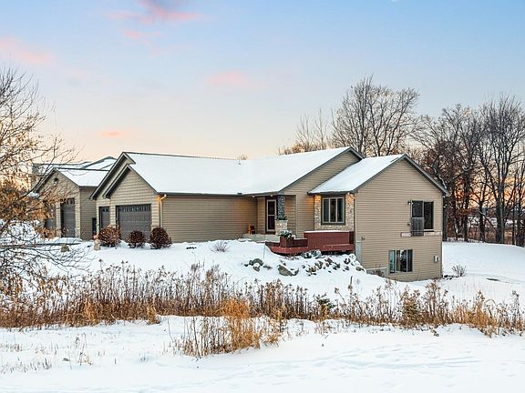 Situated on 2.5 acres, this 4 bed, 3 bath rambler has it all! Oversized 3 car, heated attached garage plus a 30’x40’ heated detached garage with a loft. Open concept living area with Acacia floors, granite countertops, large center island, walk in pantry and SS appliances. Owners’ suite includes a large walk-in closet, in floor heat, jetted tub, separate shower and dual vanities. The walkout lower level includes a family room with a gas fireplace and custom wet bar, a full bath and two additional bedrooms. You will fall in love with the stunning views of the backyard - there is so much space to roam and play!