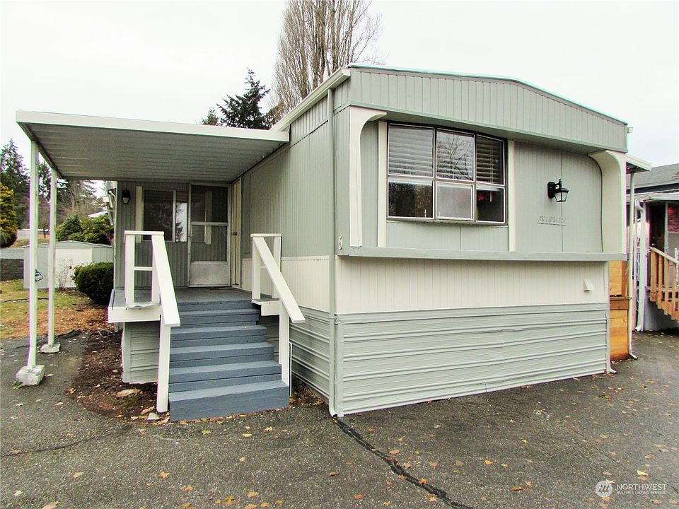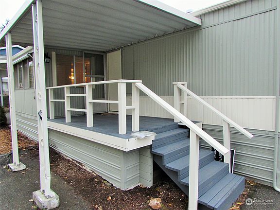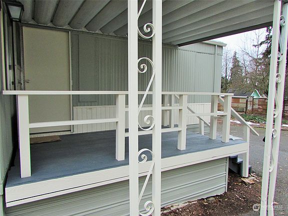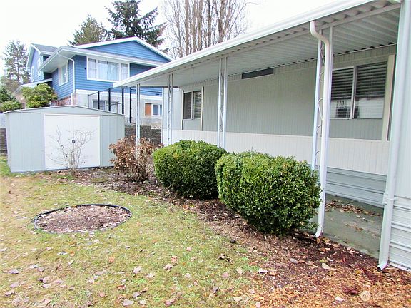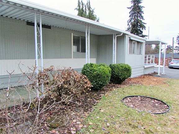 Vacant, nicely updated, 924 Sq Ft, 2 Bedroom & Bath, located in a small Senior Park in Mount Lake Terrace area, by 204th exit off I-5. Near stores, medical services & public transportation. Homes Exterior features include: Covered front Deck, Lots of covered storage, new side porches, new paint & storage shed & plenty of Parking. Updated interior features are: Interior LED lighting, Tiled counter top, Lg. South Bay window @ Kitchen sink, Appliances, flooring & upgraded Bathroom, new paint thru-out w/designer colors & Seller is offering $2,500 Buyer credit for new Fridge & Washer/Dryer. Lot rent is $800.00 p/m w/ about $100.00 p/m for utilities.. Quiet Senior Park close to everything. Home is vacant & move-in ready, come take a look!