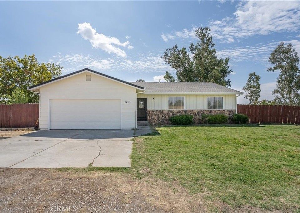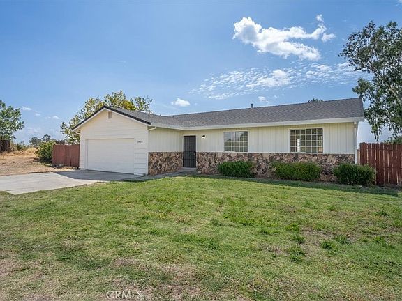 The property offers 1,568 square feet of living space, featuring three bedrooms and two bathrooms, all situated on a spacious 2.43-acre lot. The home has been freshly painted both inside and out, with new flooring throughout. The kitchen is fully updated with new cabinets, quartz countertops, an island that includes a ranch sink, and a built-in dishwasher. Stainless steel appliances complement the modern kitchen design and extend throughout the home. The primary bathroom boasts a walk-in shower, adding a luxurious touch to the space. Additionally, new lighting fixtures enhance the home's fresh, contemporary appeal.