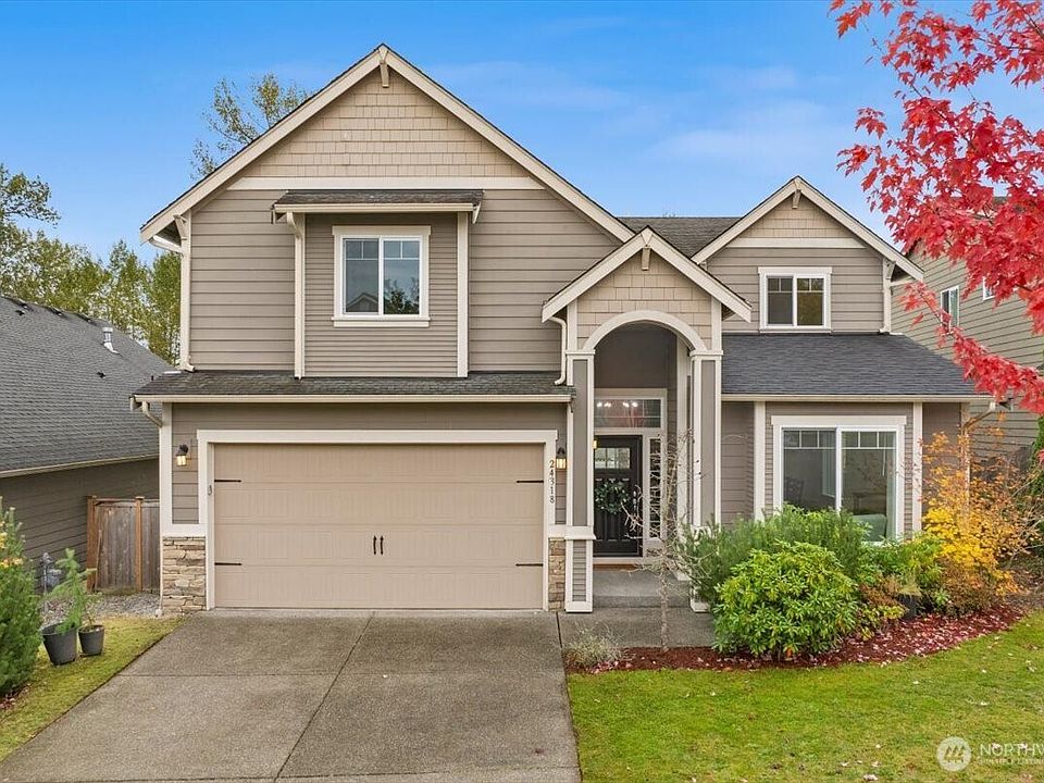 Nestled in the picturesque, tree-lined neighborhood of Rainier Vista at Jenkins Creek, this beautiful 2-story gem offers 2,600 sq ft, 5 beds, 2.5 baths and is absolutely TURN-KEY! Main floor welcomes you w/ vaulted ceilings into a light-filled living room that seamlessly flows into the dining featuring elegant arches & columns. Kitchen features SS appliances, large island & eating area that opens to the great room w/ cozy gas fireplace—perfect for gathering this holiday season! Upstairs, discover 5 spacious bedrooms including the primary suite. Updates include new carpets, paint, light fixtures. A/C, tankless water heater & EV-ready outlet. Walk to schools, Covington Community Park, Aquatic Center and the future Lakepointe Urban Village.