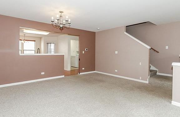 Great interior subdivision! Close to all the shopping, transportation and Gail Borden Library! 2-story hardwood entry! Bright and open floor plan! Large living/dining room combo that flows into the very functional eat-in kitchen with 42" maple cabinetry, pantry closet, hardwood flooring and French door to your own private balcony! All appliances stay! Convenient 1st floor laundry! The lower level flex room could be a den, family room or extra bedroom! Spacious master bedroom with cathedral ceiling, walk-in closet and private bath with oversized dual sink vanity and walk-in shower! Gracious size secondary bedrooms! Neutral throughout! Some light cosmetic work needed but great investment!