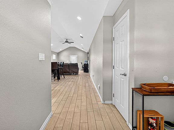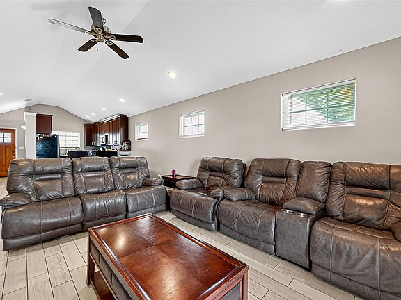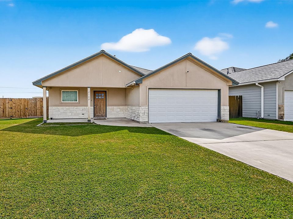 Welcome home to 2432 Hedgerose. Tucked quietly at the back of the neighborhood, this 3-bedroom, 2-bath home feels like a peaceful little getaway from the noise of the day. Designed with functionality and comfort in mind, the home features all-tile flooring in main areas and soft carpet in bedrooms. The kitchen is filled with cabinet space (three lazy Susans cabinets included!), plenty of room for meal prep, and a breakfast bar that’s perfect for morning coffee or catching up while dinner simmers. Out back, evenings have their own kind of magic. Café lights glow softly across a covered portion of the patio, a TV stays mounted for weekend games or movie nights, and the fenced yard gives you room to breathe, relax, and enjoy your privacy.