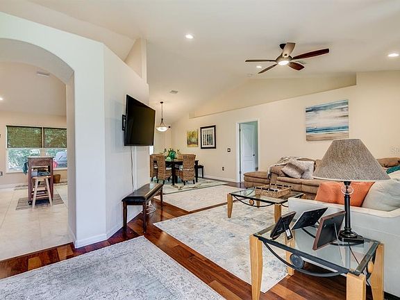 Hurry up while this immaculate 2019 built 3bedroom, 2bath, 2car garage home is available!! As you enter this beautiful home you sense the light and space through the high ceilings, decorative lead glass front door, wood flooring and open floor plan. If you love to cook this is the kitchen for you, all new stainless steel appliances, 2pantries, an abundance of storage, eat in kitchen space with a breakfast bar. Indoor utility room, his and hers closets in the master bedroom and a walk in shower in the master bath. Pavers just added to the rear covered, screened in porch for your outdoor entertainment space. This property almost measures a quarter of an acre, plenty of room to add a pool or just make your own backyard oasis. If you love to travel, you'll love that you are just a hop, skip and jump from the interstate, veteran's expressway, Orlando, Tampa International airport and so much more! You will have more than enough options for restaurants, entertainment and a host of shopping! This house is not going to last in this market, book your appointment while this fabulous property is available!
