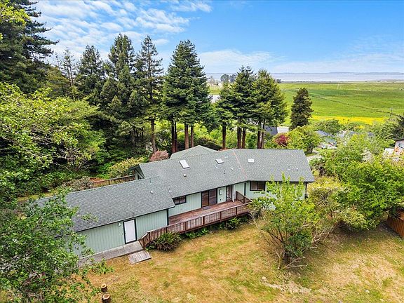 Beautiful Bayside Home with Views - First Time on the Market! Custom-crafted, single-story move-in ready home. offering stunning panoramic views of Arcata Bay to Eureka, Pastures and Fickle Hill. Privately nestled at the end of a shared driveway, this home offers privacy, peaceful surroundings, and easy access to both Arcata and Eureka. Inside -- bright, open-concept with skylights, large wood-wrapped windows, and four sliding glass doors, new hardwood flooring, brand-new induction range and oven. Outside -- the beautifully balanced 1.5-acre property includes Redwood forest, lush landscaping, and a flat open backyard with mature fruit trees - expansive wraparound and rear decks -- perfect for gardening, relaxing, or entertaining. See details below for additional updates and features Updates: