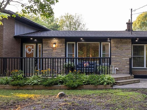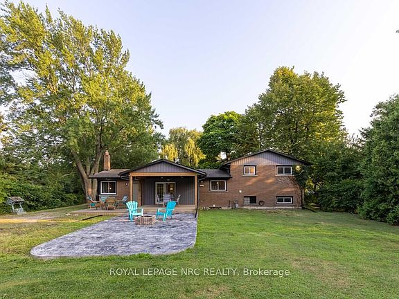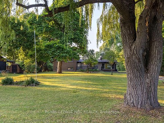 Set back from the road and known affectionately as "The Willow Pond" house, this is a 1.2-acre haven that feels miles away but keeps you close to everything that matters. You'll feel the rhythm of life with wide open spaces, mature weeping willows, and a private pond that brings wildlife in the warmer months and skating adventures in the winter. The property stretches generously both front and back, offering quiet corners and open lawns to enjoy year-round. Whether you're relaxing on the front porch or gathered on the back deck, the outdoor lighting casts a warm, inviting glow long after the sun goes down. Step inside the home to a welcoming foyer and a thoughtfully designed side-split layout. The main floor flows from the living room, anchored by a large window, into a light-filled dining area with doors to the backyard. The kitchen overlooks the yard and features crisp white cabinetry, stainless steel appliances, and an island that invites conversation, meal prep, or quiet morning coffee. Just off the dining space is a beautiful sitting room with wood beams overhead, a fireplace, and a picture window that frames the outdoors like a painting. With its own exterior access, this room also works well as a mudroom without losing its charm. Upstairs, 3 bedrooms offer double closets and lovely natural light, while the refreshing 3-piece bath features a deep tub, double sinks, and a large vanity. On the lower level, there's a cozy rec room, a 4th bedroom, and another 3-piece bath with a glass shower. The basement offers great potential as a workshop or storage space, with existing shelving already in place and plenty of room to customize. 2432 Port Robinson Road is a home that inspires you to grow, gather together, and savour every season life has to offer. Updates: Fridge, Stove, Washer (2024), Windows, Plumbing, AC, Kitchen, Bathrooms, Decks, Water Supply/Waterline from Cistern (2022), Eaves & Fascia (2020-2021), Furnace (2012)