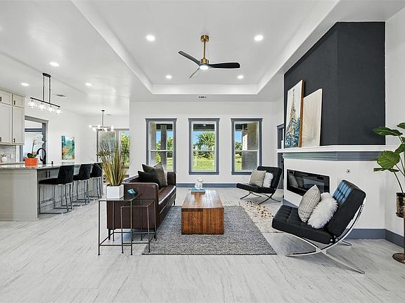 Welcome home to 2432 Raven Circle, a beautiful new construction home in the peaceful community of Blanchard. Resting on nearly an acre, this 2,349 sq ft residence offers the perfect combination of timeless style, thoughtful design, and modern efficiency. The inviting open floor plan connects the living, dining, and kitchen areas, creating a warm and welcoming space for gatherings. The kitchen features a farmhouse sink, granite countertops, stainless steel appliances, and ample cabinetry—ideal for both everyday meals and special occasions. A handsome stone fireplace serves as the focal point of the living room, offering comfort on cool evenings. Four spacious bedrooms provide plush carpeting and generous closet space, while two well-appointed bathrooms include quartz countertops and quality fixtures. Built with efficiency in mind, this home includes EIFS siding and spray foam insulation for year-round comfort and energy savings. A three-car garage provides room for vehicles, storage, or hobbies, and with shops allowed the possibilities for this property are endless. Surrounded by the charm of the countryside, yet with the convenience of nearby amenities, located 30 minutes outside of Norman and Oklahoma City, yet just 45 minutes from TAFB. This home offers a place to truly settle in and enjoy for a lifetime of memories!