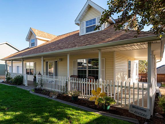 Conveniently located near everything Central Oregon, with views of Smith Rock, airport and city. This home sits in desirable Valleyview neighborhood, and is minutes to Eagle Crest, hiking, trails, fishing, water sports, snow adventures, the airport and Bend. This beautiful farmhouse in town has a wrap around covered porch, 3 bedrooms plus a Den/Office, and 2.5 bath. Large primary bedroom with private walk out deck. Beautiful place to watch the fireworks, stars, or just relax with quiet privacy. Neighborhood is secluded, but close to shopping, walking paths, and easy access to Hwy 97 or Hwy 126. Many upgrades including, new walk in shower installed 2023, new toilets 2023, new garage door openers 2023. New flooring and Heat pump/AC in 20/21 with smart thermostat,, retaining wall and landscaping/driveway in front recently expanded. Landscaping is easy maintenance. Large private patio in the back for BBQing, relaxing and entertaining