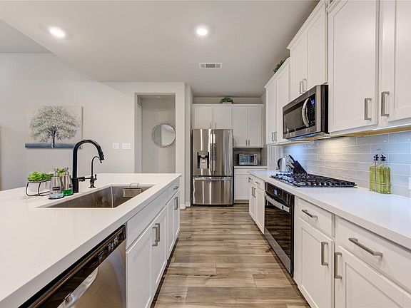 Better than NEW: WATER SOFTENER, 50 amp generator Inlet plug(outside), Added Ceiling fans in bedroom upstairs, primary bedroom and patio, Blinds. This is a stunning Ashton Woods home - Enjoy the peace and quiet of this GATED section. The stone and brick front elevation welcomes you as you walk up to a covered patio perfect for enjoying the quiet street. The Washington floor plan offers an open concept kitchen, dining and living space overlooking the private backyard. The first floor primary bedroom suite highlights a spacious walk in closet and bathroom complete with a double sink vanity and separate walk in shower and soaking tub. Walk upstairs and enjoy the oversized game room, an en-suite bedroom and two additional bedrooms. Located in Sunterra with full amenities like the Lagoon and lazy river, fitness center and much more. Assigned to new school Cross Elementary, walking distance. HOA includes alarm system.