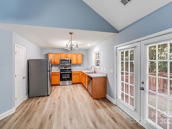 Welcome to this beautiful 4-bed, 2-bath home in Gastonia, NC! Sunlight beams through the windows, filling the home with warmth and natural light. The main living area features a free-flowing design where the kitchen, dining, and living room seamlessly connect—perfect for entertaining or enjoying everyday living. The kitchen is thoughtfully designed with a pantry, stainless steel appliances, and ample counter space, making meal prep a breeze.