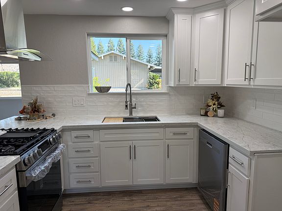 Mountain Views! Close to Lake Kaweah & Sequoia National Park! Welcome to this Charming Country Retreat in beautiful Lemon Cove, where modern comforts and wide-open spaces come together to create your perfect escape. Set on almost 1/2 acre this 3 bedroom 2-bath home has been completely remodeled from head to toe. Featuring an updated kitchen with New Custom Cabinetry, New Stainless Appliances, beautiful Quartz Countertops in the Kitchen, Bathrooms and Laundry Room. The spacious Breakfast bar is perfect for gathering with family and friends. The Bathrooms have also been thoughtfully updated with Quartz countertops and Custom Cabinetry, blending both style and practicality. The Backyard offers plenty of room for relaxation, hobbies and outdoor living. The Covered Patio is a perfect place to relax under the New Ceiling fans . This lovely home has so much to offer! Granite, Stainless, Beautiful Tile Back Splash, Luxury Vinyl flooring throughout, New Windows, New HVAC , New Roof, 25x17 Dog Run, New Electrical Panel Box, the list goes on & on!! Don't forget the 13X20 Mancave/Shop either!!!