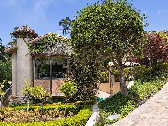 Introducing one of Carmel-by-the-Sea area's finest secret estates: an extraordinarily charming, old-world, storybook Villa on the market for the first time since 1985. Exquisitely designed and remodeled by John Newcomb, one of Carmel's most creative and esteemed designers. Styled whimsically in high quality artisan craftsmanship, Newcomb captured a thorough & timeless European Countryside character. Behind the heavy-timber security gates, hung on stout Carmel stone ornamental pillars, time slows down inside this extremely private 24,000 sf hillside property with meandering park like setting walkways, and breathtaking ocean views. In total, Villa and Guest house, four bedrooms, four bathrooms, five fireplaces, two ocean view balconies, and two car garage.