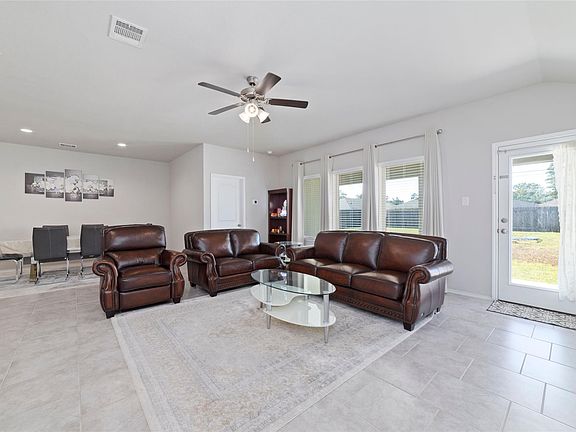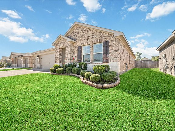 This beautiful one-story home features an open-concept layout filled with natural light, high ceilings, and a gourmet kitchen with a large island, granite countertops, stainless steel appliances, and ample cabinetry overlooking the spacious living and dining areas—perfect for entertaining. The primary suite offers a luxurious bathroom with double sinks, a soaking tub, separate shower, and walk-in closet, while the additional bedrooms provide comfort and privacy. A 3-car garage with a wide driveway and exterior access leads to a large backyard with a covered patio ideal for outdoor living. Located in a peaceful community near parks, trails, and top-rated Klein ISD schools, the home offers quick access to grocery stores, restaurants, Grand Parkway Marketplace, and major highways including Hwy 99 and I-45, just 15 minutes from The Woodlands and major employers.