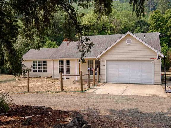 Accepted Offer with Contingencies. Beautiful home w/acreage only 8 miles from the heart of Corvallis! Features include circular driveway, beautiful fireplace in front room, laminate-wood floors, jet bath tub in Master bathroom, separate living and family room, all with a great country feel! Brand new carpets to be installed 8/22! Great space for animals and the 780 SF shop with RV door has a loft for extra storage! Property boarders woods, creek and backed by Starker Forest Land. Country living so close to town wonât last long, see it today!