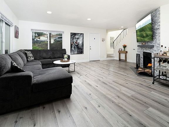 Welcome to the most REMODELED unit in the entire development! Nestled in a beautiful & peaceful neighborhood, this 3 Bedroom home has been COMPLETELY REMODELED throughout with First Class Features! You'll be WOWED as you step into this spacious & open floorplan with Luxury Vinyl Plank flooring throughout the entire home! The NEW/upgraded light fixtures, recessed lighting and upgraded Fireplace wall will inspire you! The KITCHEN IS GORGEOUS and has been COMPLETELY REMODELED with quartz countertops, beautiful backsplash, Shaker Cabinets, Soft-Close Drawers, Roll-out trash cabinet, and BRAND NEW Stainless Steel appliances. All Bathrooms have also been newly remodeled and even include silent exhaust fans! The three Large Bedrooms upstairs benefit from new Dual-Pane & Retrofit Vinyl Windows with EcoCoat, New mirror closet door, Upgraded black-out shading system, and VAULTED Ceilings. Step into the private Deck which includes a New (key-lockable) sliding glass door, New Vinyl fencing and New light fixture. The Deck space is generous, very private and perfect for BBQ or reading. Enjoy DIRECT ACCESS to the garage through the Deck. The Garage is spacious and has extra high ceilings, perfect for additional storage shelving above. Other upgrades include New CENTRAL A/C & HEATING, New Water Heater, New baseboards, New closet door, New Dual Pane EcoCoat windows throughout the entire home, New Laundry Doors and Shelves, and New Washer & Dryer upstairs. Don't wait! This opportunity won't last long!