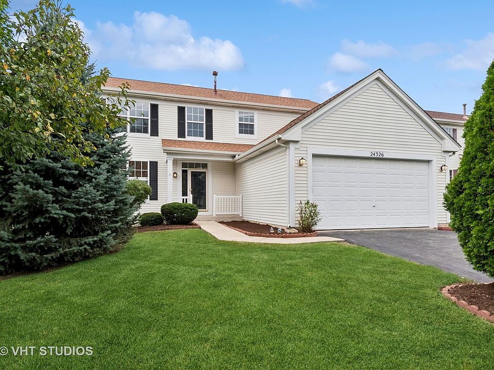 Welcome to this exquisite 4-bedroom, 3.1-bath home located in the highly sought-after Heritage Meadows subdivision. Featuring a finished basement with a full bath and a versatile office/den space, this residence seamlessly blends luxury and functionality. The recently updated kitchen boasts custom-built 42-inch cabinets, modern quartz countertops, a subway tile backsplash, and stainless-steel appliances. The main level offers a spacious living room, dining room, and a convenient office/den, perfect for entertaining and working from home. Upstairs, the expansive master bedroom includes an extended sitting area ideal for an office or reading nook, complemented by three additional spacious bedrooms. All bathrooms have been elegantly updated with new sinks. This home is conveniently located near shopping, restaurants, and freeways and is part of the highly regarded Plainfield North High School district. Combining modern updates with versatile spaces, this home is a perfect choice for families. The home offers many updates including- new exterior and interior Paint, new carpet, new AC, new Sump pump with back up battery, new refrigerator, Complete list of updates in additional information.