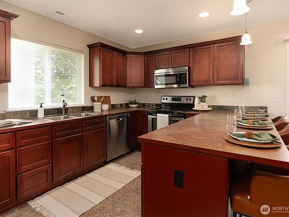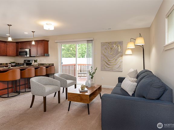 This pre-inspected 3 bed, 2.5 bath home is all about location! Minutes from Alderwood Mall, the Lynnwood light rail, and both I5 and 405 freeways. This bright home has a spacious garage, open floor plan, large kitchen, and breakfast bar open to the living room. Upstairs, the spacious primary room has an ensuite bath w/walk-in shower & WIC. Two additional large rooms and laundry upstairs. This home features A/C and recent upgrades include: washer/dryer (2023), water heater (2024), dishwasher (2024), and a freshly painted interior (2025). The sellers are also including a brand new 70” TV! Whether you're a first-time buyer, down-sizer, or someone looking for a great location with modern comforts, this checks all the boxes. Welcome home!