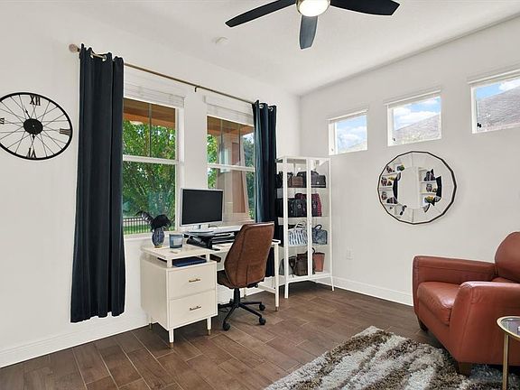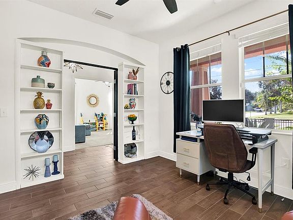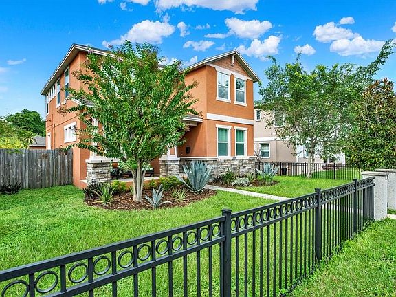 Welcome to this beautifully maintained home in the highly sought-after Kenwood neighborhood. Built in 2016, this residence offers both timeless charm and modern convenience, all just minutes from downtown St. Petersburg. The inviting front porch and wrought iron fence create excellent curb appeal. Inside, you’ll find wood-look tile floors throughout the main level, decorative baseboards, and arch doorways that add character. An office (or make it a formal dining room!) at the front of the home is filled with natural light, while a spacious guest bedroom sits just across the hall. The heart of the home is the island kitchen featuring designer granite counters, stainless steel appliances and a pantry that flows seamlessly into the great room. French doors open to a covered lanai overlooking the private, fenced backyard—ideal for entertaining or even adding a pool. A paved walkway leads to the detached garage for added convenience. Upstairs, the generous primary suite boasts tray ceilings, abundant windows, an oversized walk-in closet, and a spa-like bath with dual vanities, a soaking tub, and a beautifully tiled shower. Two additional bedrooms, another full bath, and a laundry room complete the second floor. Perfectly located near the Edge District, waterfront parks, museums, and vibrant Downtown dining and festivals, this North Kenwood gem offers both comfort and convenience.
