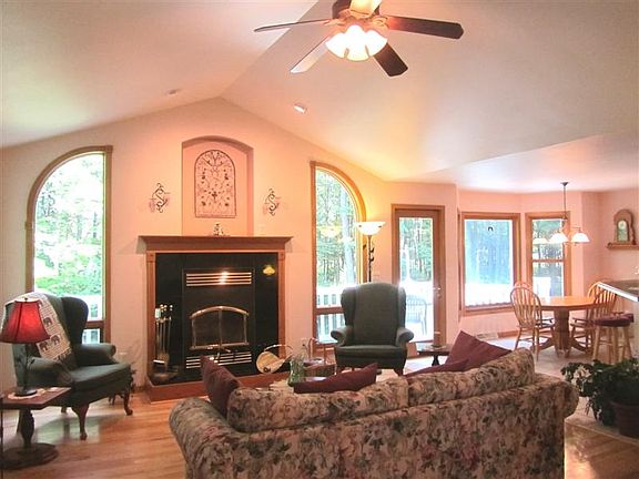 4 bedroom, 3 ½ bath, 3 car attached garage, one story home in Eagle Pointe subdivision is priced to sell. This 2001 stone/vinyl construction by Keystone has 2,906 finished square feet and new oak hardwood floors, appliances and kitchen counter top in 2015, new flooring in master bedrooms and hall in 2013. Some of the amenities include the 11 ft. cathedral ceiling in the living room with a wood burning fireplace, open concept from kitchen to living room, master bedroom with Jacuzzi tub,Tray ceiling, walk in closets and private entrance to maintenance free flooring on deck, finished family room with large picture windows and pool table, and stairwell from garage to basement. This beautiful home is on a private, wooded 1.49 acres with deeded access to a common area that includes a private lake on Eagle Pointe. The lake can be enjoyed for canoeing, paddle boating, kayaking, swimming and has great fishing possibilities! Another benefit to the common area is there is plenty of room to picnic by the waterfront or watch the children play in the open space or enjoy the playground set.