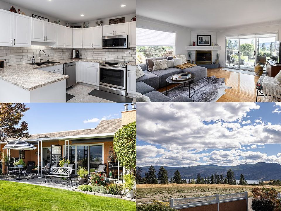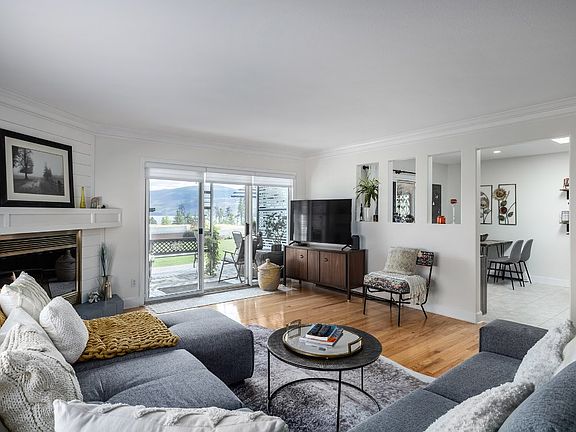 Immaculate FREEHOLD Bare Land Strata semi-detached duplex with Lake and Mountain Views and leisure gardens 55+. Fully renovated with 2 primary suites, featuring upgraded crown moldings, hardwood & vinyl flooring, and 3 skylights. The layout includes a spacious eat-in kitchen with SS appliances, roll-out cabinetry, and loads of storage. Enjoy the warmth of two gas fireplaces and ductless A/C. The strata covers heat, hot water & gas for fireplaces. Additional highlights are the extra large patio, garage, and proximity to amenities, including the beach and rec center. This property boasts shiplap details in all three bathrooms, radiant baseboard heat. Electricity only $56/month, Experience elegance and comfort in this gem. On;y one owner must be 55yrs+.