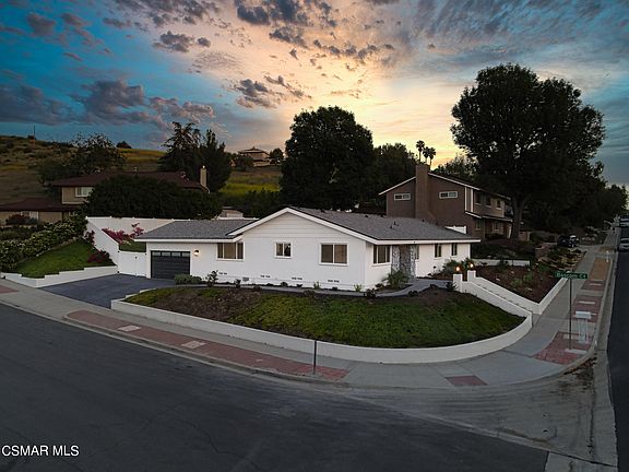 Beautiful single level home situated in a prestigious Thousand Oaks neighborhood. This 4 bedroom, 2 bathroom home has been refurbished to include the following upgrades: Interior/Exterior paint, smooth ceilings, recessed LED lighting, Milgard dual pane windows, Luxury vinyl flooring , 3 panel interior doors, hardware, base & case. Newer A/C & Heat. Chef's kitchen with white shaker cabinets, center island, Thermador stainless steel appliances & quartz counter-tops. Large living room with tiled porcelain fireplace, capped with a black slate hearth. Separate formal dining room. Spacious Master bedroom. Master bathroom retreat features marble surround, marble flooring, glass enclosure & dual vanity. Hall bathroom offers porcelain surround, glass enclosure & dual vanity. Exterior upgrades include, Stamped concrete driveway, stamped front walkway, garden walls & drought tolerant landscaping. Insulated automatic garage door. Roof replaced 2021. R.V. or boat access. Backyard features sparkling pool & spa with stamped concrete patios, vinyl fencing & covered patio. Centrally located to top schools, parks, hiking trails & shopping!