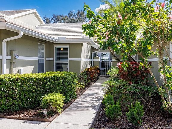 Don't miss this FAΒUᏞΟUS move‐in rеady 2B/2ba plus DEΝ villа w/screened lanai backing to private yard. 1 1/2 car garage has room for golf cart! MAJOR UPDATES: Please see "Updates and Features List". Floors, kitchen, baths, propane tank for gas range, full hurricane coverage with impact glass, panels and more! Spacious primary suite boasts 2 newly fitted walk-in closets. This split bedroom home offers high ceilings & an open plan perfect for entertaining! HOA covers:*Insurance on roof/bldg is named storm*, all lawn maintenance, roof sprayed 2x/yr, driveway pressure cleaned every 2 yrs, exterior painted every 6 yrs, basic cable/hi-speed internet.Cable service is currently upgrading to fiber-optic. Guard-gated entrance! Club membership optional but must join to use amenities. Monarch is a very active club offering lots of different activities. ClubCorp/Invited-an internat'l corp w/reciprocity at other clubs. Easy access i-95/Turnpike, shopping,Stuart,beaches,PBI airport. "A" rated schls