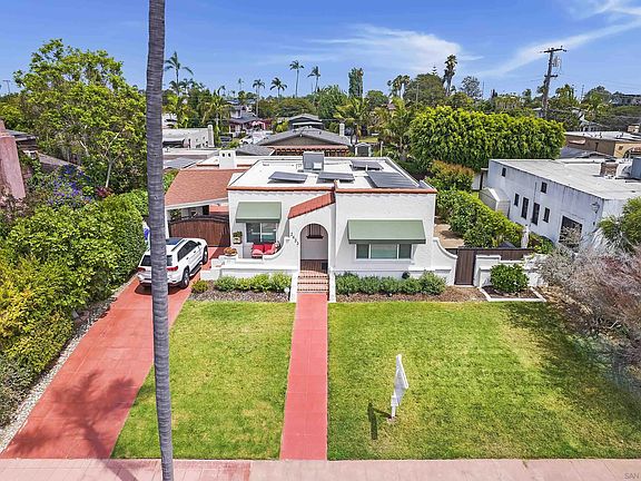 Historic Mission Revival Meets Modern Luxury in Burlingame Welcome to Burlingame—one of San Diego’s most historic and sought-after neighborhoods, known for its architectural charm, walkability, and vibrant community feel. Surrounded by stunning period homes, this area stands out as one of the most desirable in the city. This beautifully remodeled Mission Revival residence artfully blends modern elegance with timeless design. From classic coved ceilings to a spacious open floor plan, give a nod to the home’s architectural roots. Every detail has been thoughtfully curated. Nearly $200,000 in upgrades reflect refined taste and attention to detail—along with significant structural improvements to ensure comfort, durability, and peace of mind. Smart-home features include three Ring cameras and an Ecobee smart thermostat, offering modern convenience, energy efficiency, and added peace of mind. A 16-panel solar system was recently installed, providing sustainable energy and long-term savings. Step inside to find beautifully crafted flooring that flows seamlessly throughout the home, combining modern style with low-maintenance durability. The bathrooms have been fully renovated with premium finishes: the en suite features eye-catching patterned tile that adds style and character, while the second bath is finished with porcelain tile featuring a refined marble pattern. Both spaces evoke a spa-like feel, with high-end materials and fixtures throughout. Please see supplement for more details The gourmet kitchen is a showpiece, featuring custom cabinetry, quartz countertops, premium appliances, a charming farmhouse sink, and a welcoming eat-in bar—perfect for both everyday living and entertaining. Elegant, Mediterranean-style light fixtures throughout the home add warmth and character . Step outside to a beautifully landscaped, south-facing backyard designed for outdoor living—creates the perfect setting for al fresco dining. Mature fruit trees offer shade, beauty, and a farm-to-table lifestyle, while a timed B-hyve smart irrigation system ensures year round curb appeal with minimal effort. A freestanding Wolf outdoor grill with its own dedicated gas line also conveys. Additional highlights include a charming porte cochère and an extended driveway that comfortably accommodates 2–4 vehicles—providing convenient, private off-street parking Other updates include a new driveway, upgraded drainage, and fully modernized electrical, plumbing, HVAC, and structural systems—delivering modern performance behind a historic façade. Located just moments from local cafés, boutiques, and restaurants, this home offers not just a place to live, but a lifestyle. This is more than a home—it’s a rare blend of location, history, and thoughtful modern living which offers comfort and functionality