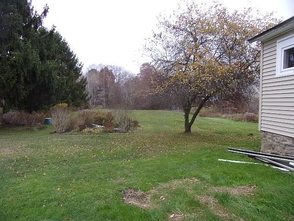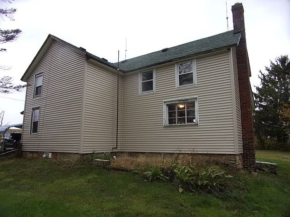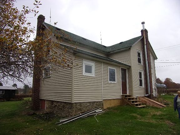 3 bedroom, 1 bath home. There is much to work with already done. Some work still needed. Newer windows, updated electric circuit breakers, vinyl siding. This home has a sand mound and shared spring on subject property. Foundation in basement area is large cut field stone. Nice, mostly level 3.9 acre lot. 3 car detached garage. Will not pass VA or FHA. Electric and gas are currently estimated.