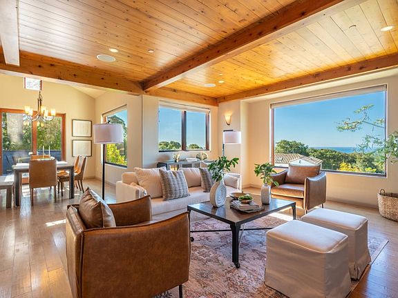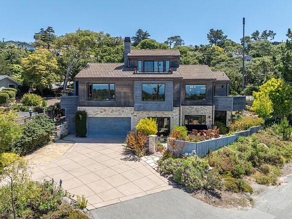 Experience expansive ocean views and a Chef's kitchen in this sophisticated 2013-built home. With 3,000 sq ft of living space, it offers 3 bedrooms, 2.5 baths, a media room, den, and a 2-car garage with additional parking and plenty of storage. There is also an elevator that connects the garage to the main level. Located on a 9,000 sq ft lot, the primary bath features a steam room and a semi-enclosed hot tub with ocean views. Enjoy sunny decks and patios with two level outdoor spaces, free from overhanging trees. The home is wired for sound throughout. Its rustic contemporary aesthetic suits the modern Carmel lifestyle, ideal for entertaining or a cozy evening