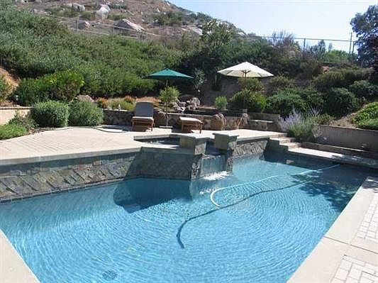 Inviting resort backyard with inground pool and spa, including a large koi pond. Executive home for entertaining. Sunken living & family rooms, separate dining off the chef's island gourmet kitchen w/granite counters. hardwood floors in family room w/French doors. Luxury master suite w/balcony view of pool. Vaulted wood beam ceiling 3 fireplaces.
