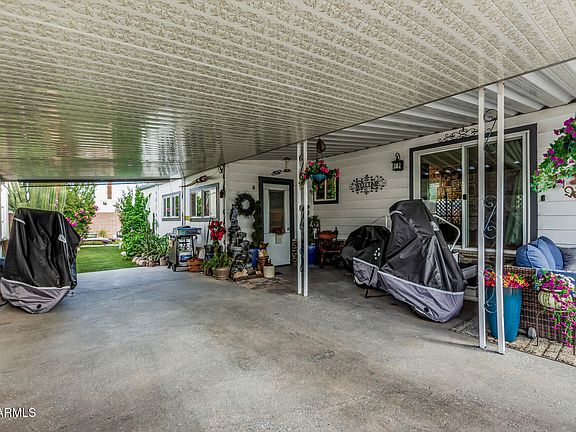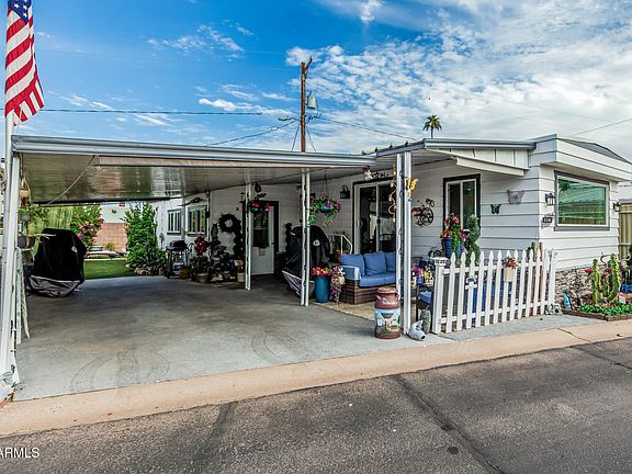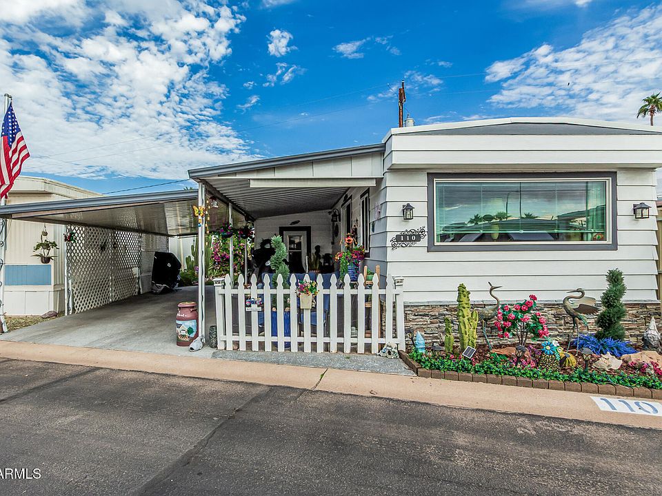 Over $38,000 in recent upgrades; low e Argon windows, new insulated roof, central air, plumbing, electric panel, new gas lines, insulated siding and more that make this home not only comfortable but impressively efficient for low-cost, easy living—it's practically BRAND NEW! Step through the relaxing front courtyard and into this adorable 2-bedroom home with new Pergo wood-look floors & faux brick accent walls. The kitchen shines with stainless steel appliances, warm wood cabinetry, a stylish tumbled stone backsplash. The backyard is the SHOWSTOPPER! A peaceful retreat with beautiful landscaping, two handy sheds and space to enjoy the outdoors. The community offers resort-style amenities including a sparkling pool, spa, fitness room, pickleball court, and more. Washer, dryer and fridge convey with sale. The two sheds in the backyard convey with sale. Full list of upgrades available, as well as warranties, upon request.