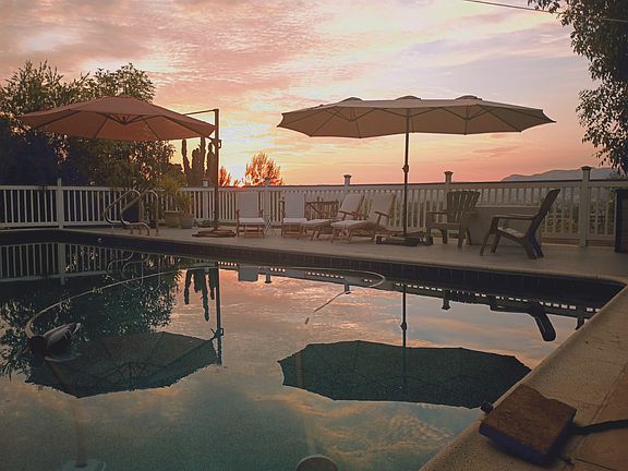 Just steps from a heated 36-foot lap pool. Mornings bring birdsong and fresh air; evenings end with sunset views from the deck.