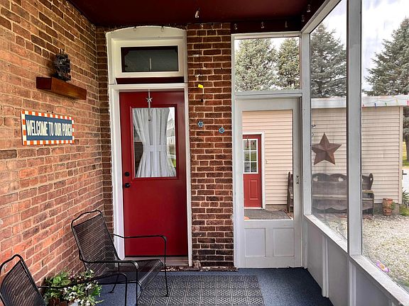 This charming 4 bedroom/2 bath historic brick home, nestled on nearly an acre close to town, presents a blend of timeless elegance and modern comfort. The kitchen is a chef's dream, featuring a large island and stainless steel appliances. Some Recent upgrades, including new electric and main floor plumbing ensure a low maintenance lifestyle. New Bee windows lend lots of natural light and improve energy efficiency. Additionally, it features a 3-car garage with new roof replaced in May 2024 and a pole barn, providing ample storage space. Main floor laundry adds convenience to daily living. The partially finished basement offers a spacious rec room, ideal for entertaining. Outdoor living is embraced with a screened porch and patio. Step into the large primary bedroom on the main floor, where you'll find an updated bathroom complete with a beautiful tile shower and a spacious walk-in closet, combining modern amenities with the home's historic charm.