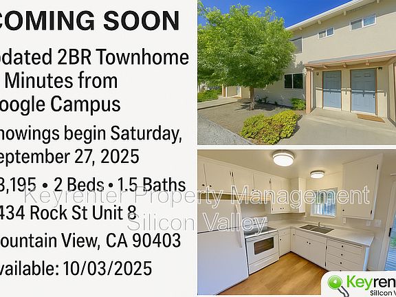 Must-See rental home located at 2434 Rock Street #8 in beautiful Mountain View, CA! This 2 bed/1.5 bath rental is 913 square ft and is located within minutes of Google and the best of Mountain View. Live affordably in one of the highest-priced areas of Silicon Valley. You have to take a look at this place!