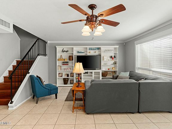 Looking for one of the largest floorpans in a nice townhome community located in the wonderful Phoenix Valley? Look no further! Upon walking in past the unit's private gate, you enter in to an open family room with crown moulding + formal dining room that will instantly make you feel right at home. Head into the spacious kitchen and breakfast area where you'll find beautiful, newer stainless steel appliances that all convey with this property! The main floor also has a walk-in laundry room (washer/dryer convey), a half-bathroom, walk-in pantry, and a large sliding glass door that brings you out to the private yard with a covered patio and low-maintenance turf. Follow the REAL hand-scraped hardwood floors up the stairs onto the 2nd story where you'll find all 3 bedrooms. The large primary suite has a massive walk-in closet with its own private bathroom. In the hall you will find another full bathroom, an ironing station, and the entrances to 2 private guest bedrooms with closets. This townhome has AMPLE storage throughout, including 3 exterior storage units (2 are walk-in.) BIG bonusthe 3.5 ton HVAC unit AND Hot water heater were replaced in 2024!