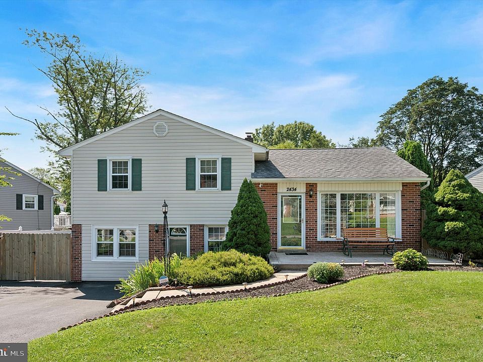 AN OFFER HAS BEEN RECEIVED AND MORE ARE EXPECTED. PLEASE SUBMIT HIGHEST AND BEST BY WEDNESDAY AT 11AM. A DECISION WILL BE MADE BY THE END OF THE DAY. This charming 3-bedroom, 1-bath split-level home blends comfort and convenience inside and out. Approach the home and notice the brick and vinyl exterior is complemented by a welcoming front patio. Inside, you'll find a bright living room with crown molding and hardwood floors beneath the carpet. The rear Anderson French slider adds both style and function to this level leading to the spacious rear wood deck—perfect for relaxing or entertaining. Upstairs, 3 beds share a well appointed hall bath. All bedrooms are believed to have hardwood floors under the carpeting. Not to be missed, is the finished lower level with recessed lighting, a cozy wood stove, and walk-out access to the driveway. Enjoy practical updates and features throughout, including a newer roof on both the house and detached garage, vinyl tilt-in windows, a newer paved driveway for up to 6 cars, and a fully fenced-in backyard with a 1 car garage with workshop table and attached shed. Additional highlights include central air, a Rheem water heater, French drain system with dual sump pumps, and ample parking in the 5–6 car driveway plus street parking. Needs some updates like paint and flooring to make it your own! Located close to Routes 322, I-95, and the Delaware border, this home offers easy access for commuting and daily convenience.