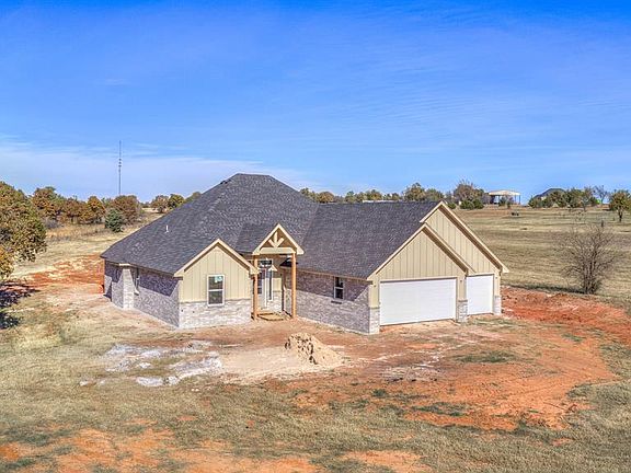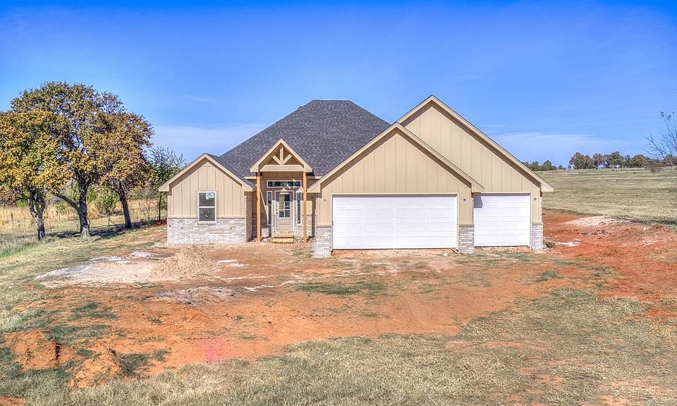 Discover refined country living in this stunning 1,960 sq ft modern farmhouse, perfectly positioned on a serene 0.84-acre cul-de-sac lot in Blanchard's highly sought-after Wolf Creek Estates. Thoughtfully designed and expertly crafted, this brand-new home offers the ideal blend of luxury, comfort, and contemporary style. Featuring 3 spacious bedrooms, 2 beautifully appointed bathrooms, a dedicated office, and an expansive dining area, this residence provides room for both relaxation and productivity. The open-concept layout is elevated by high vaulted ceilings that create a bright, airy, and exceptionally spacious feel throughout. Step inside to find gorgeous modern finishes, including beautiful designer tile, wood-look flooring in the main living areas, and elevated selections that bring warmth and sophistication to every room. Gather around the cozy living room fireplace for quiet moments, or unwind outdoors on the inviting covered back patio, where evenings are peaceful and private. With nearly an acre to call your own, there’s plenty of room to add a shop, garden, or outdoor living features tailored to your lifestyle. This Wolf Creek Estates beauty is the perfect retreat—modern, stylish, and built for the way you live. Don’t miss your chance to call this extraordinary new construction home.
