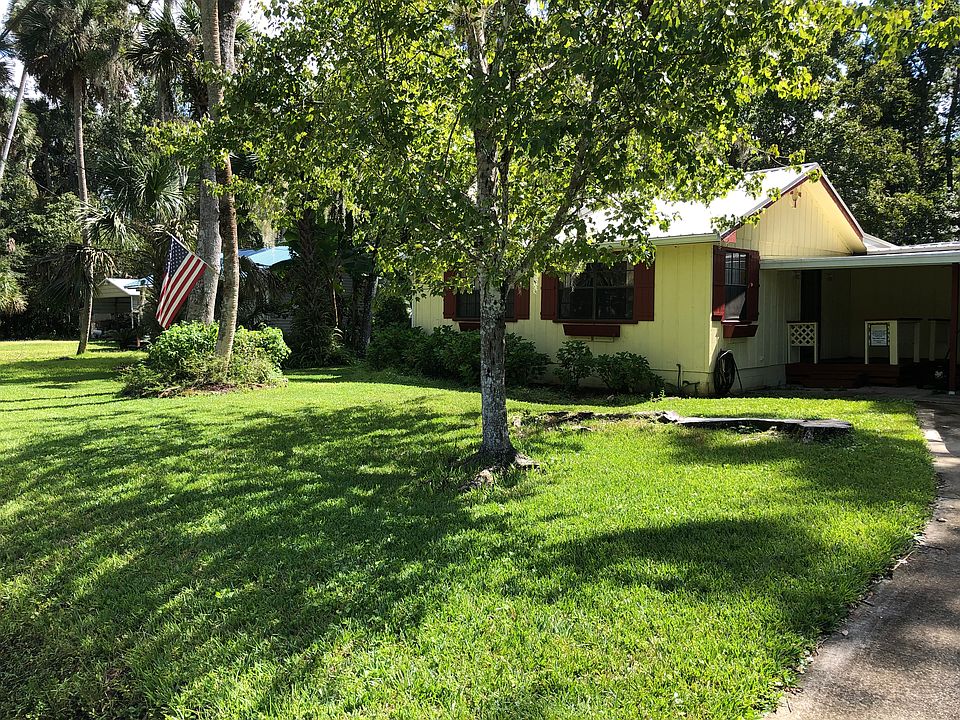 Canal Frontage! Private Pool! Quiet neighborhood with private, 15 x 30 pool. Boat house has new motor and 5000 lb capacity cradle. New metal roof in 2018. Bathrooms have been remodeled and it is MOVE IN READY. Wonderful large chattahoochee stone fireplace in the 26 x 22 great room - what a great place for gatherings of family and friends or barbecue after a swim in the 35 x 15 screened pool area with covered lanai. Just a short ride down the canal takes you right into The St. Johns River - don't miss a cruise down Blue Creek or into Lake George to access Silver Glen and Salt Springs Run or visit one of several eating establishments on the water. So much to do in this quaint community surrounded by The Ocala National Forest and just a short ride to the beaches of The Atlantic Ocean in Ormond, Daytona and New Smyrna, historic DeLand and Mount Dora area and not much further to area attractions - even closer is The Pioneer Settlement in Barberville - activities listed on the calendar of events on the chamber website. NOTE: This home is a 1972 modular home with a conventional addition on both front and back. It is unlikely a bank will mortgage this home. Looking for a cash buyer; might be willing to owner finance with substantial down payment and credit/background check.
