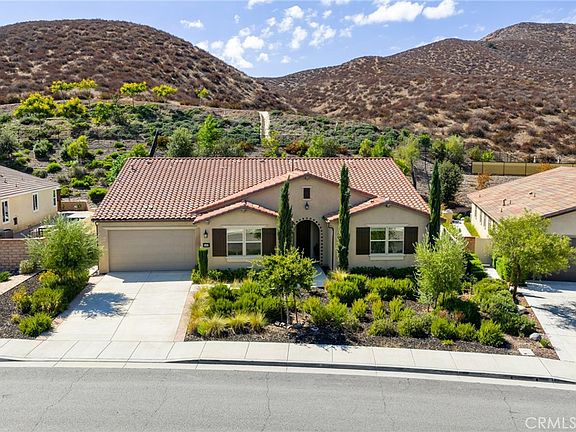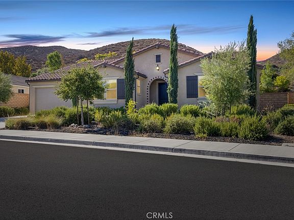 Welcome to Ponderosa Lane where dreams come true in this stunning 3100 sqft property sitting on almost a 14,000 sqft lot of land. The ranch style property features 4 bedrooms, 4 baths and a next-gen suite perfect for guests or income purposes. Located in the highly desirable gated community of Province in Audie Murphy Ranch, in Menifee, with mountain views, drought tolerant landscaping and nestled on the hillside with no rear neighbors. As you enter the home you are greeted by tall ceilings, recessed lighting, LVP floors, and a highly desirable floor plan. On the West wing of the ranch style property are two large secondary bedrooms both with walk-in closets, plush carpet, ceiling fans and tons of natural light flooding the space. The rooms share a secondary bath appointed with a dual vanity, quartz counters, and tub shower combo. Across the hall is a powder bath perfect for guests. Off the East wing of the home is the next-gen suite or Junior suite boasting a large room that can be split into a bedroom and living area or can be used as a large office or gym and offers a nook perfect for an exterior door to be built for private access. The bedroom has its own walk-in closet and attached bath featuring a single vanity and real tile walk-in shower. The amazing Great Room is appointed with large windows allowing tons of natural light to fill the entirety of the home, two ceiling fans and a massive space to decorate your dream living area. Off the Great Room is a large dining area that peers into the gourmet kitchen. The kitchen is appointed with granite counters, subway tile backsplash, stainless steel appliances, tons of storage with pull out drawers in the cabinets, and an eat up island. A flex space is the perfect office directly behind the kitchen and flows into a custom-built butler’s pantry and walk-in pantry. The large laundry room features a wash sink, the RO water filtration system and access to the 3-car tandem garage. The custom backyard boasts a $75,000 landscape design featuring an enclosed sun run patio cover with screens to allow airflow and doors to the rest of the yard which is appointed with pavers, and tons of fruit trees including Pomegranate, lemon, lime, grapefruit, avocado, and fig. The side yard is the perfect size for a pool! The community includes pools, spa, sports courts, club house, skate park, hiking and biking trails, and the award winning Taawila ES and new Kathryn Newport MS. Located between the 15 and 215 freeways!