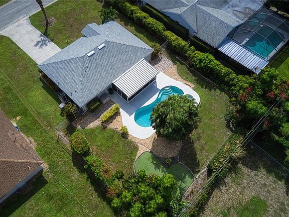 Treat yourself to this incredible backyard! Enjoy the pool & attached spa equipped with vibrant color changing LED lights, a putting green and is surrounded by lush landscaping & fencing! A tile and bamboo flooring combination makes cleaning a breeze. Eat in kitchen and large screened in patio for outdoor dining with a view! Storage cabinetry in garage. New roof (2018). No HOA, bring your toys!