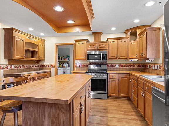 Welcome to your new hobby farm on almost 10 acres. This property has so much to offer. A variety of fruit trees (apple, pear, plum), berries (blueberries, raspberries, blackberries) and a greenhouse that can be used for whatever your heart desires. The 3 car garage is very spacious with heat and plumbing. The home is handicap accessible with doors that are wheelchair accessible. There is ample storage space throughout the home and all new appliances.