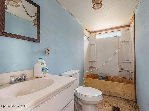 Nestled on a serene 1-acre lot in Mims, Florida, 2435 Bar C Rd presents a unique opportunity. This 2-bedroom, 2-bathroom manufactured home, built in 1973, spans 672 square feet and features an attached garage and a metal roof. The property offers ample space for outdoor activities and future developments. While the home is in need of renovation or tear down, the true value lies in the expansive land, making it an ideal investment for those looking to build a new home or restore the existing structure. Conveniently located near I-95, public boat ramps to the St. Johns and Indian Rivers, and a short drive to local beaches and the Space Center, this property combines rural tranquility with easy access to Florida's attractions.