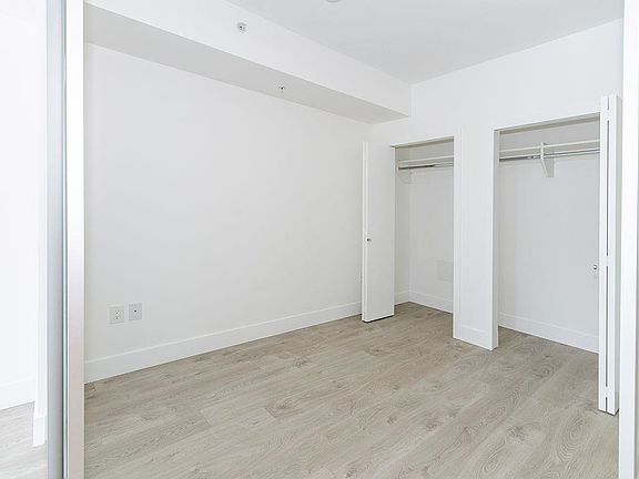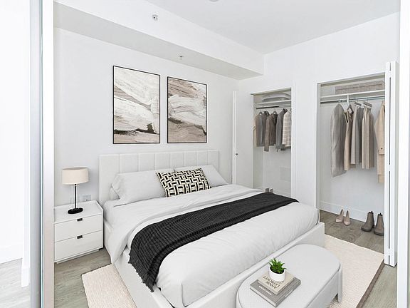 Private townhouse-style entrySleek laminate flooringPremium bosch kitchenSpa-inspired bathroomSoaker tubBuilt-in vanity shelving