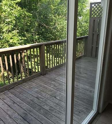 Wooded areaTwo private decksHardwood floorsOff street parking spotsWhite trimGray walls