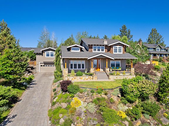 Enjoy watching the peaceful morning sunrises over Easterly Pilot Butte with outstanding Deschutes river views from the front porch of this extraordinary Westside home. The main level boasts a welcoming great room, built-ins, skylight and new fireplace creating an atmosphere of entertainment and relaxation. Enjoy a spacious chef's kitchen with an adjacent dining area, private primary suite with a cozy fireplace, luxurious bathroom with soaking tub and tiled shower, brand new wool carpeting and a giant walk-in closet featuring custom California Closet build-out. Upstairs you will find three additional bedrooms, a spacious family room with unbelievable river, easterly and city views. Head up to a private staircase that leads to a large, two room bonus area. Ideal for separate home offices and/or work out room, sewing/quilting room, fly tying /media room or add a bath and create an ADU....